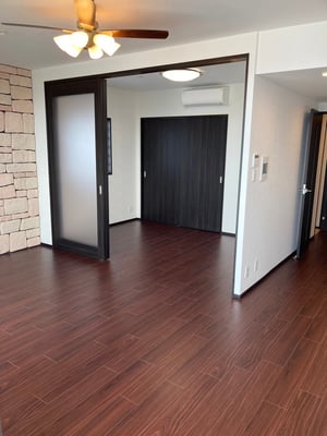 広くて木目の床が洗練された感じがあります。