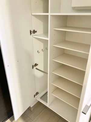 洗濯機置場と収納棚もあります。